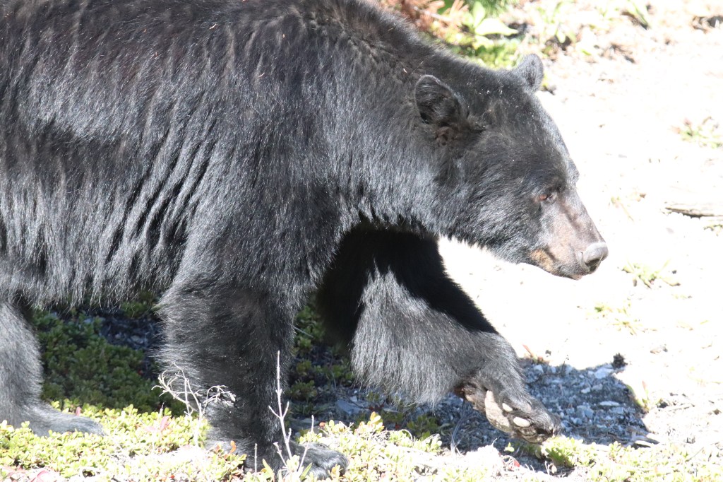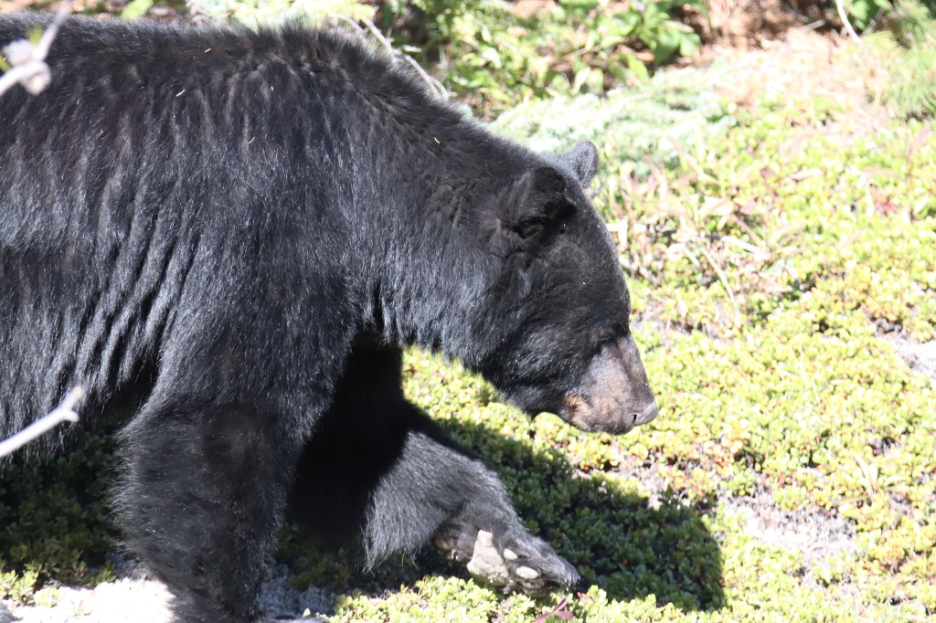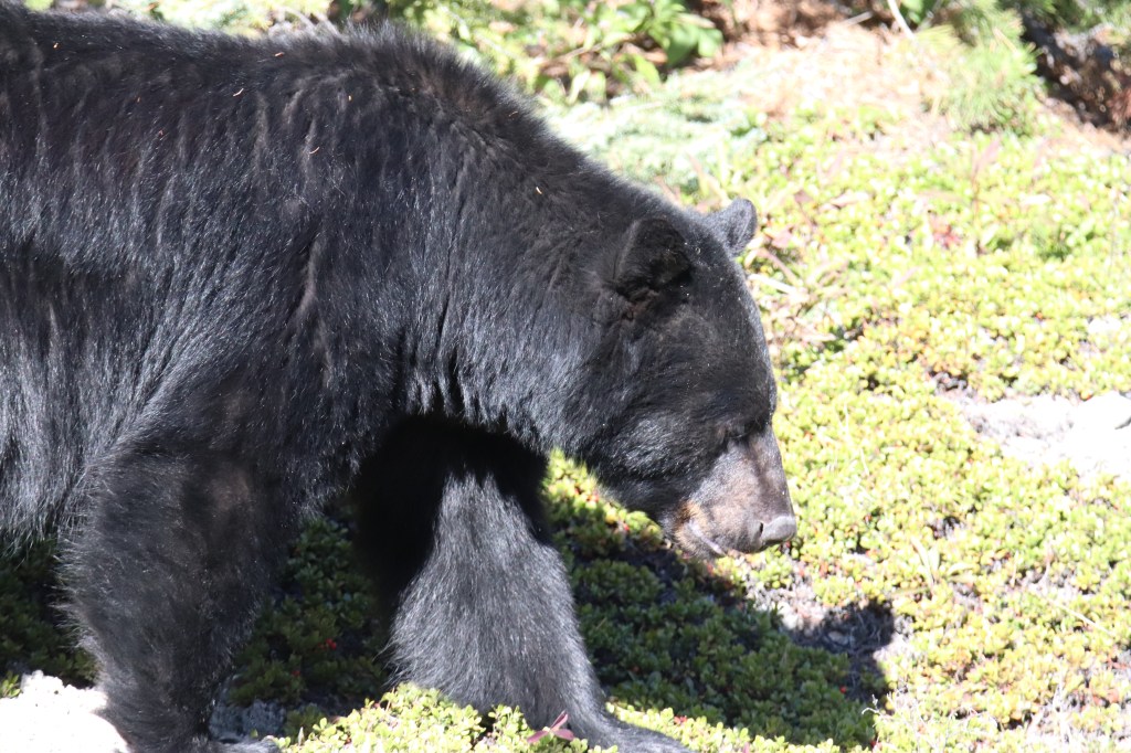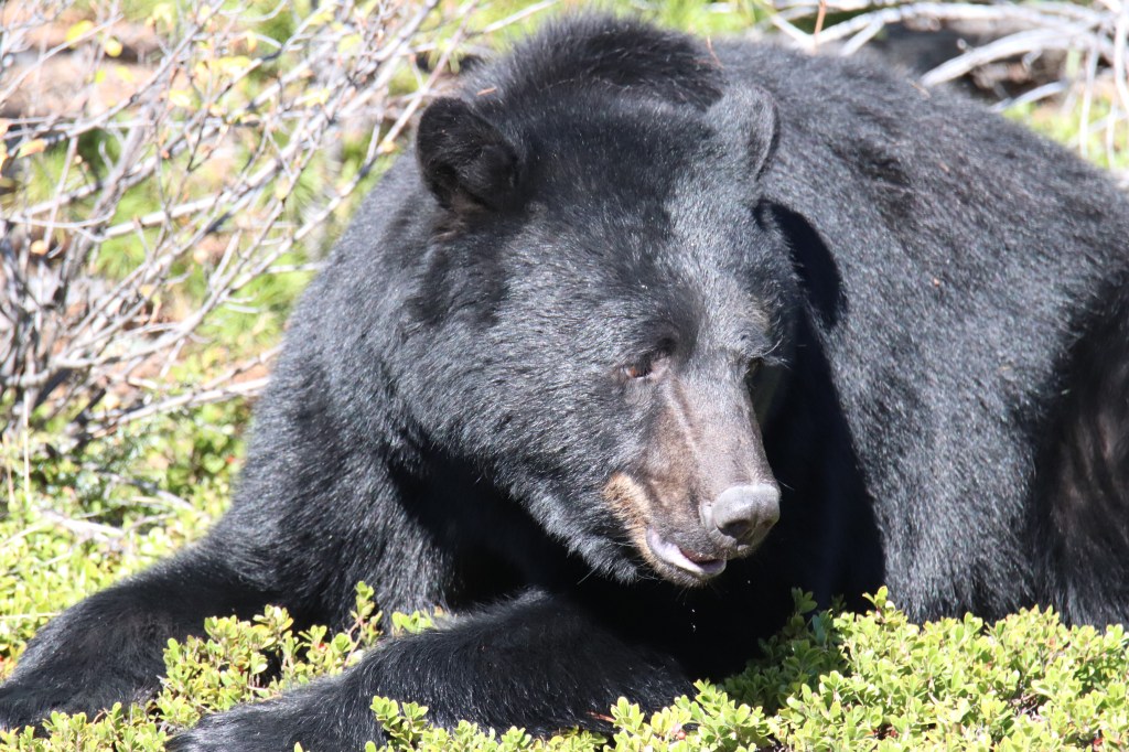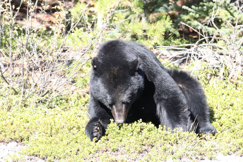 - L’ours est 75% herbivore mais peut être très opportuniste ! Il se nourrit de baies, noix, fourmis, carcasses, saumons, etc.